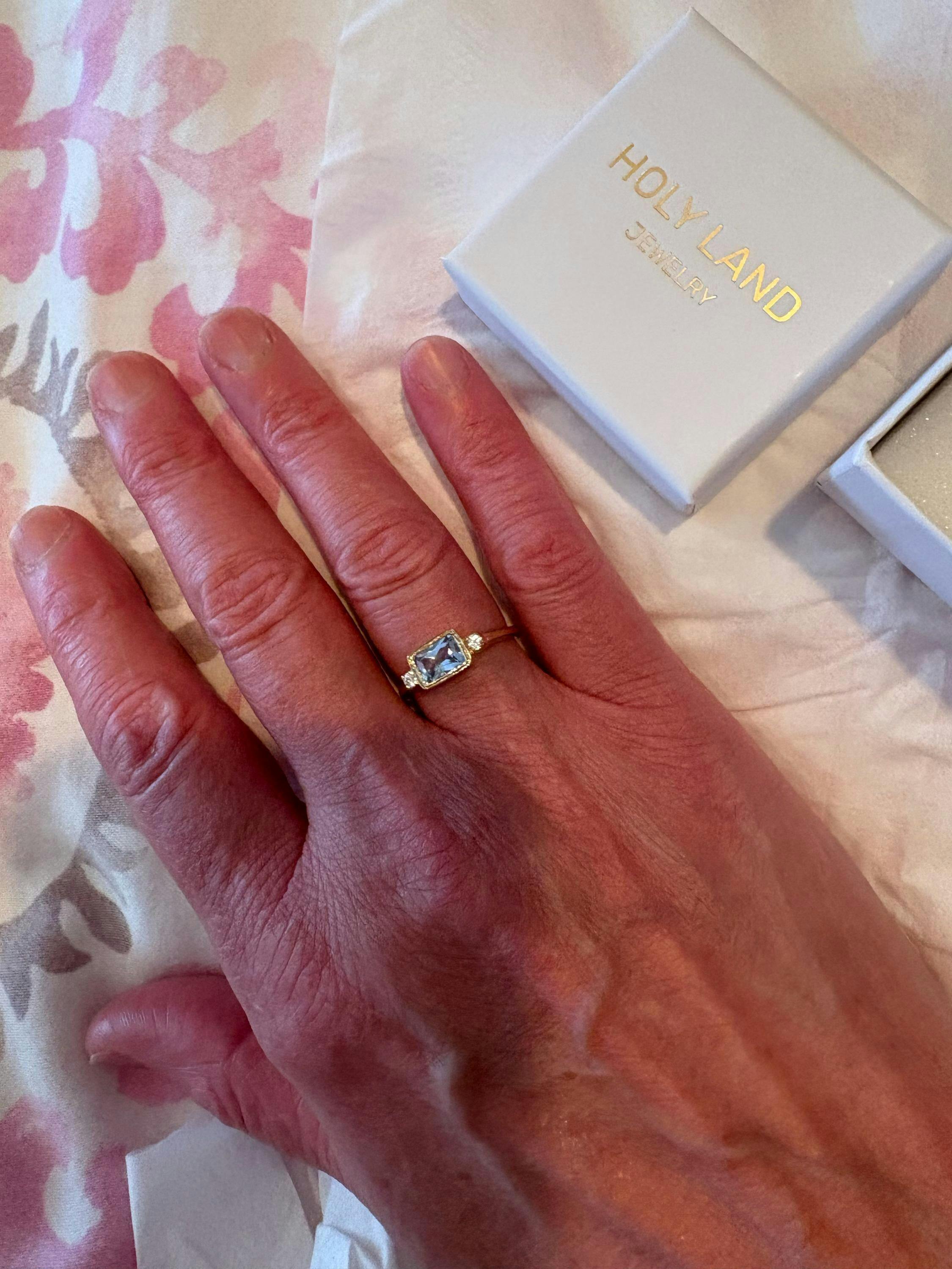 Step into a world of modern sophistication with our Simple Ring featuring an octagon-shaped aquamarine as the central stone, gracefully accompanied by small clear quartz stones on the sides. The clean lines and contemporary design of this piece create a striking balance between elegance and simplicity. Meticulously crafted for comfort and style, the octagon aquamarine brings a touch of uniqueness, while the clear quartz accents add a subtle sparkle. Whether worn as a standalone statement or paired with other favourites, this ring is a versatile addition to your collection. Explore our curated selection now and embrace the modern sophistication of this simple yet distinctive ring with its octagon aquamarine and clear quartz accents.