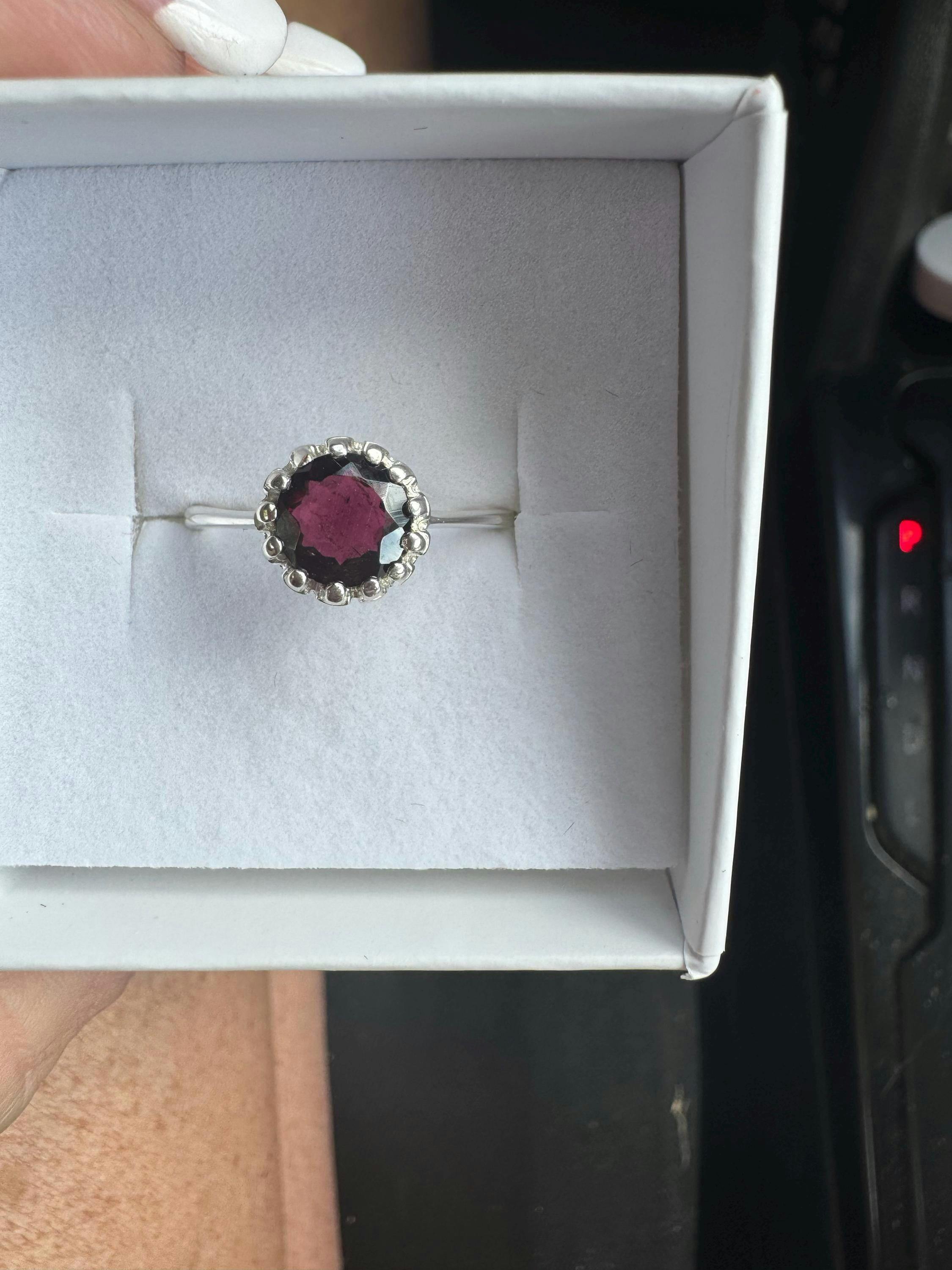Step into a world of royal radiance with our red garnet ring - a majestic piece that crowns your hand with the vibrant beauty of a round red garnet. This exquisite ring is designed for those who seek regal elegance and timeless allure in their jewelry collection. Crafted with meticulous attention to detail, the round red garnet takes center stage, showcasing its ethereal hues within a crown-inspired setting. The intricate details add a touch of regal sophistication, creating a ring that is both captivating and graceful. Whether worn as a standalone statement or paired with other favourites, this ring is a symbol of refined style. Elevate your look with this enchanting piece that captures the essence of classic beauty and artistic craftsmanship. Explore our collection now and adorn yourself with the royal radiance of this beautiful piece of jewelry - a ring that invites you to indulge in the beauty of opulence and elegance.