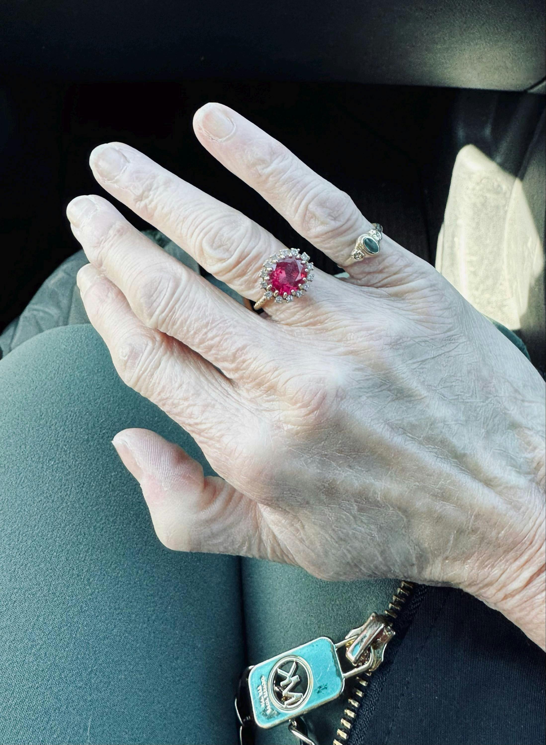 East-West Oval Ruby Ring with Clear Quartz Halo - H.L.Jewelry