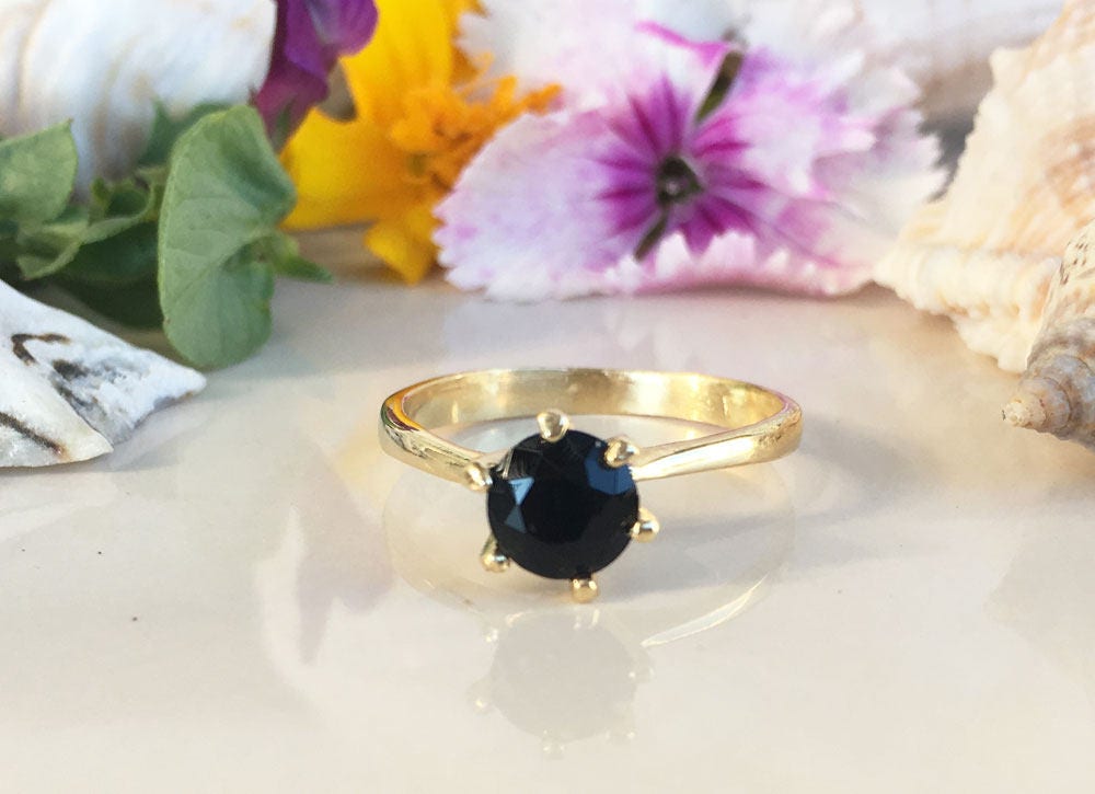 Round Black Onyx Solitaire Ring