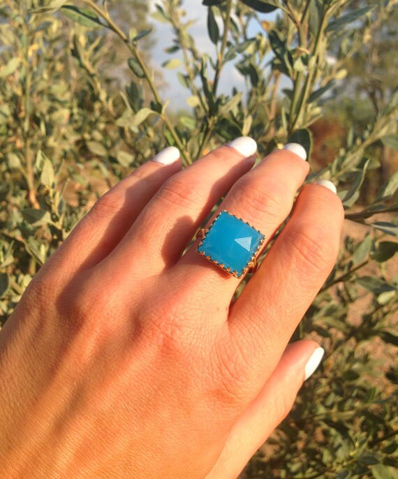 Make a bold and elegant statement with this stunning large square crown blue chalcedony ring. Featuring a mesmerizing soft blue gemstone with a regal crown setting, this piece exudes sophistication and tranquility. The smooth, luminous chalcedony radiates a calming energy, while the striking square design adds a modern edge. Perfect for those who love standout jewelry, this statement ring is ideal for special occasions or elevating everyday style with effortless grace.