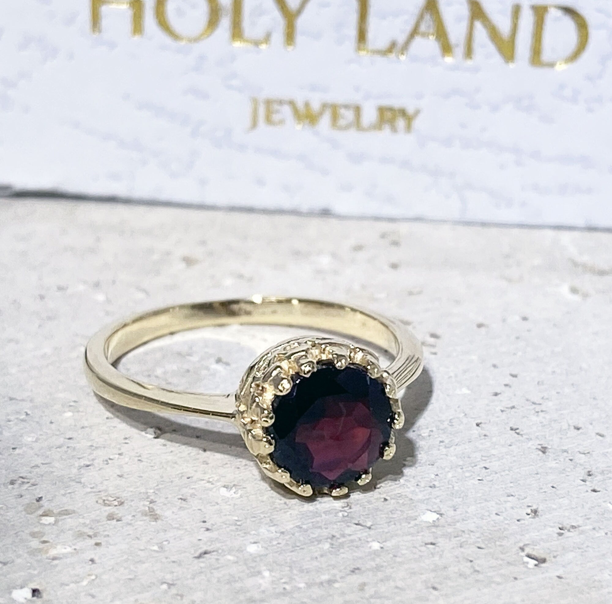 Red Garnet Gemstone Round Crown Ring - H.L.Jewelry