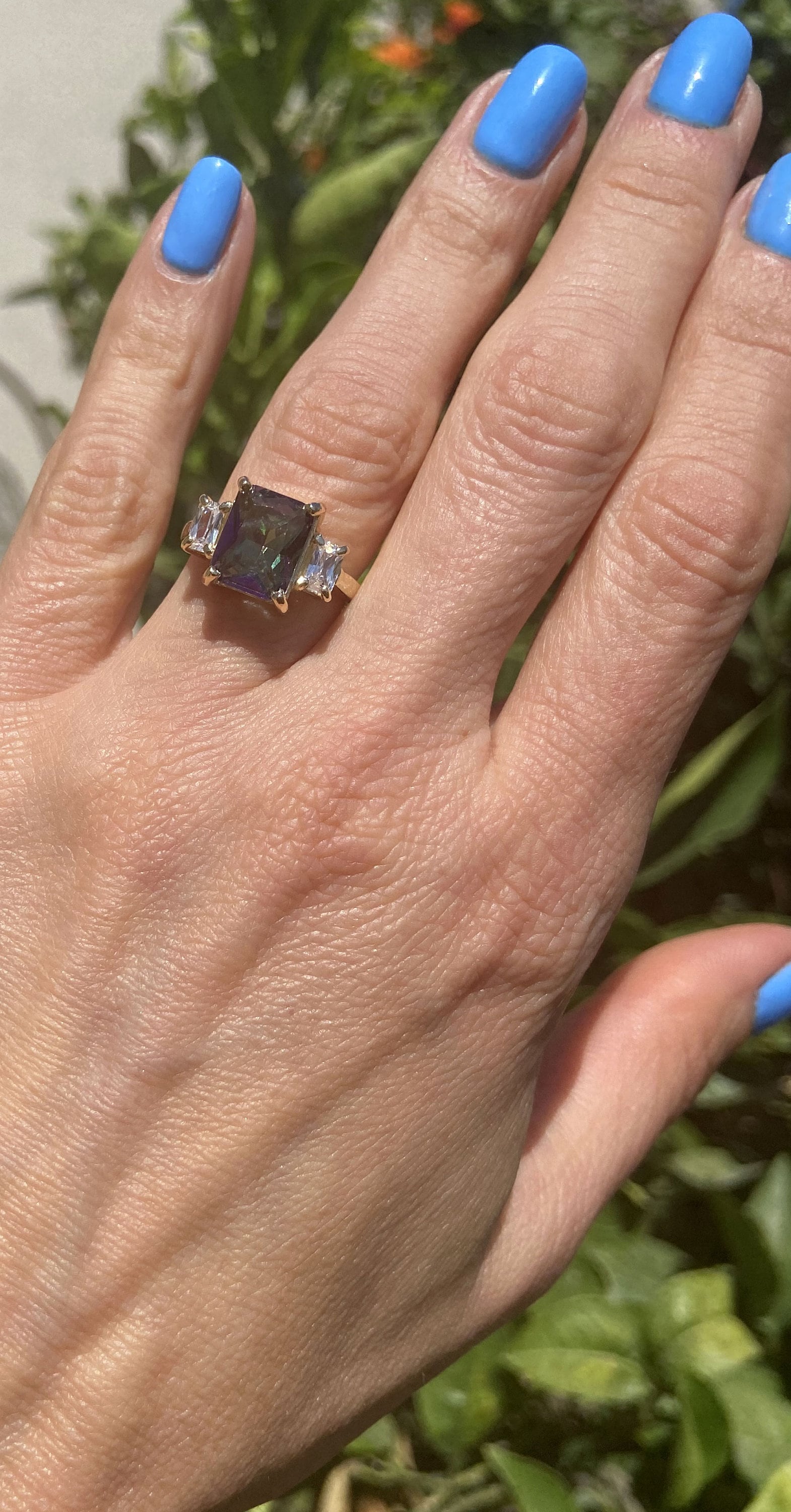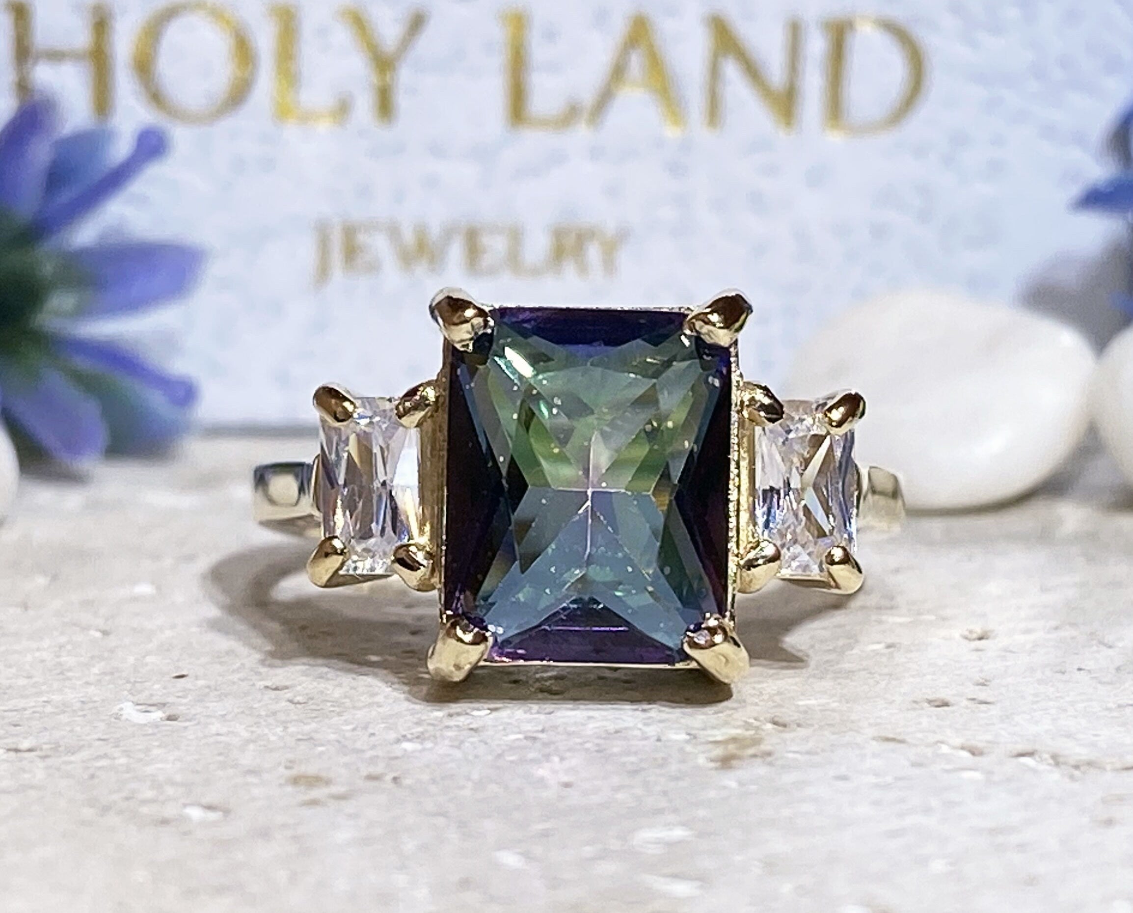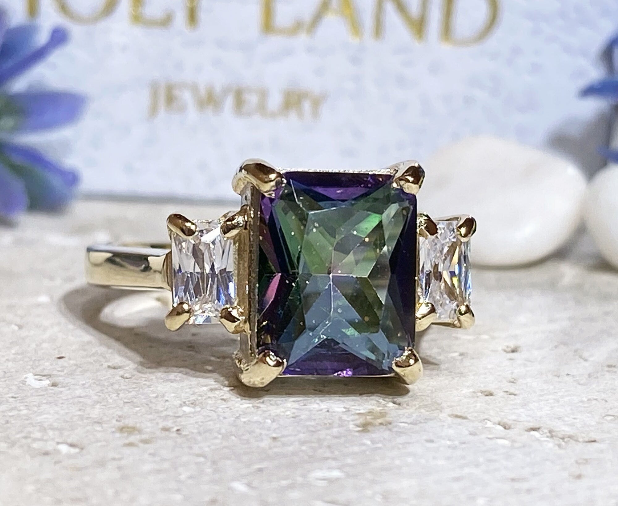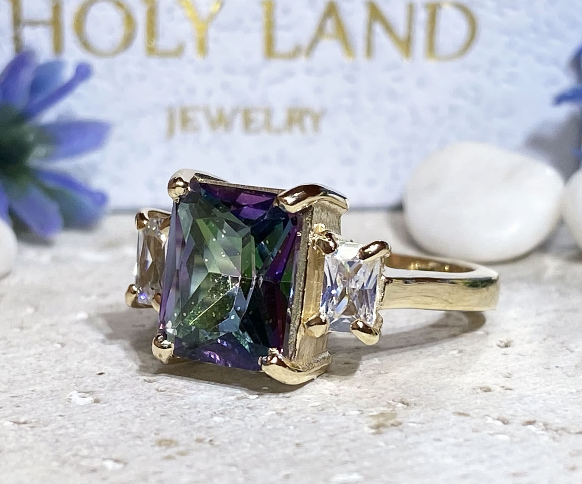 Mystic Topaz Ring - Change Color Ring - Statement Engagement Ring with Octagon Mystic Topaz Gemstone and Clear Quartz Accents - H.L.Jewelry