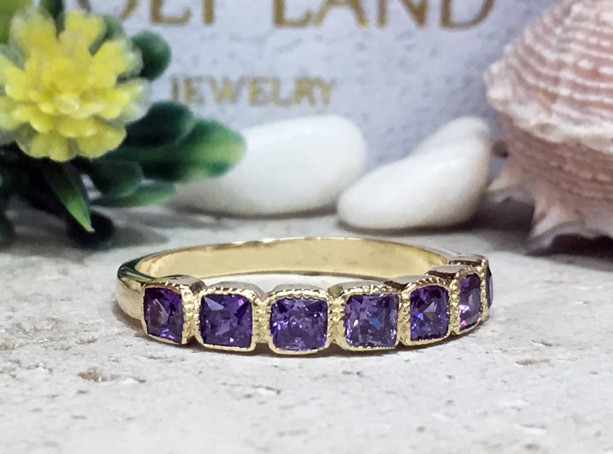 Square Purple Amethyst Seven Stone Stacking Half Eternity Ring - H.L.Jewelry