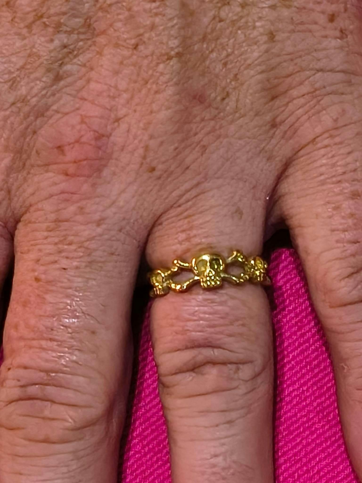 Elevate your style with our Simple Skull Ring, a sleek and understated accessory that adds a touch of edginess to any look. Crafted with precision and attention to detail, this minimalist ring features three skull motif, creating a subtle yet striking statement. The skull, often associated with themes of mortality and rebellion, is depicted in a clean and minimalist design, making it versatile for both casual and formal occasions. Its simplicity allows for easy pairing with other jewelry pieces, adding a hint of edge to your ensemble without overpowering the overall aesthetic. Whether worn as a nod to your personal style or as a symbol of inner strength and resilience, our Simple Skull Ring is sure to turn heads and spark conversation wherever you go. Embrace the subtle edge and express your individuality with this stylish and versatile accessory.